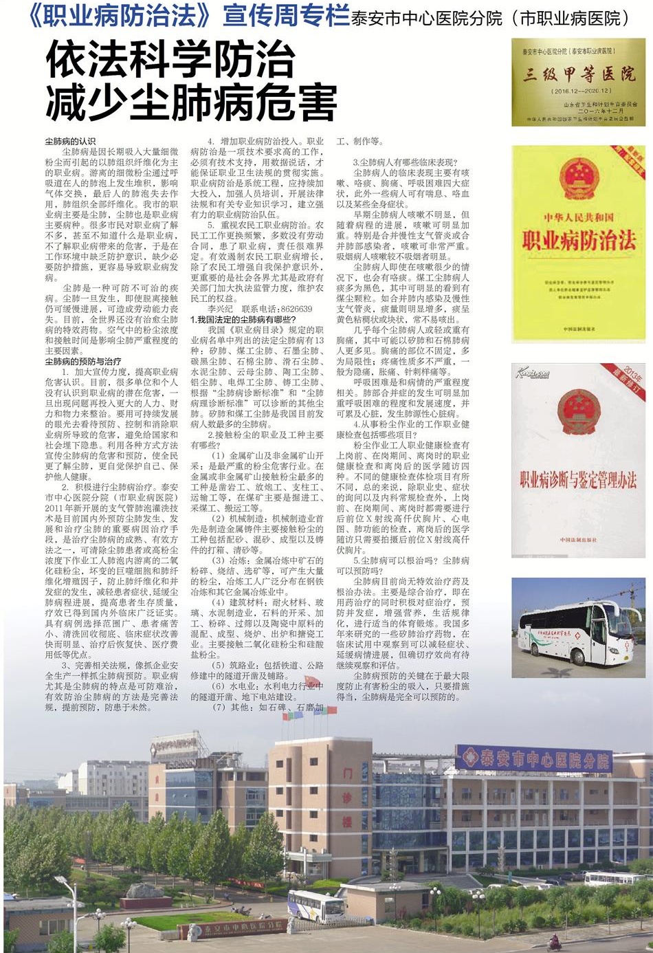 《职业病防治法》宣传周泰山晚报4月26日A07版