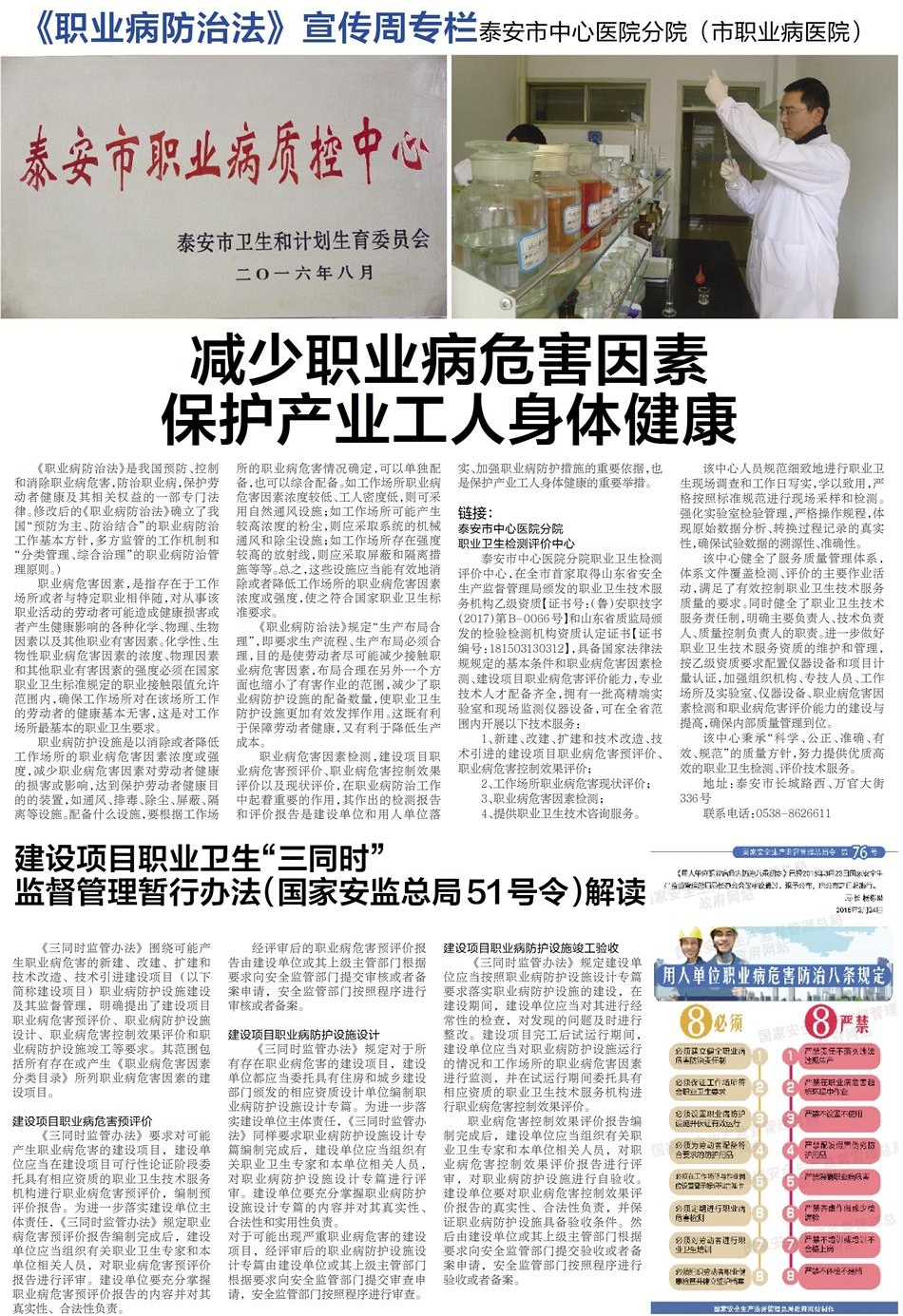 《职业病防治法》宣传周泰山晚报4月26日A07版