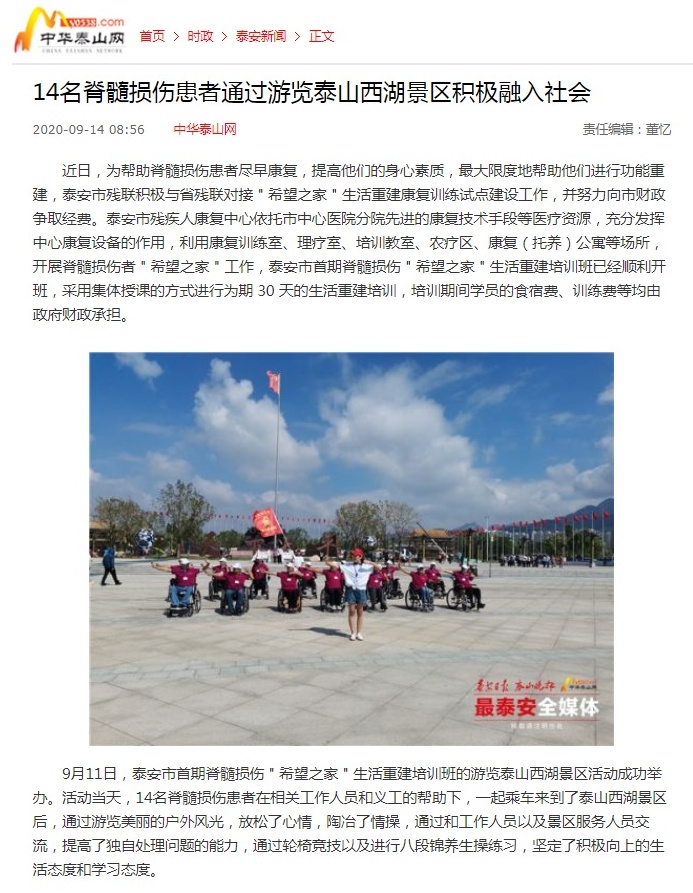 中华泰山网:14名脊髓损伤患者通过游览泰山西湖景区积极融入社会
